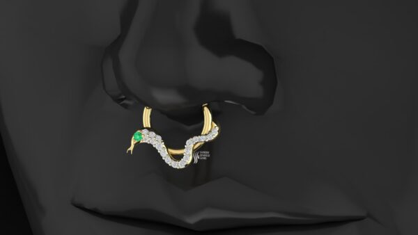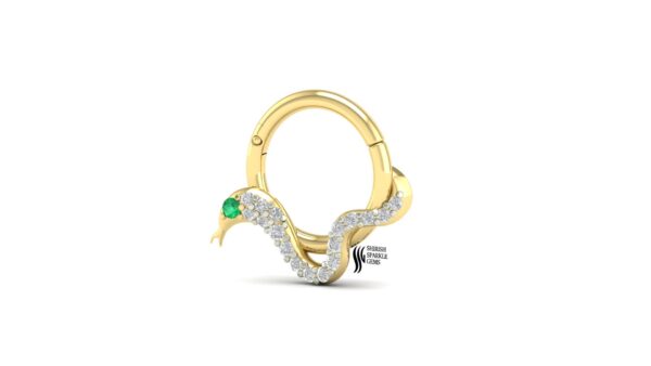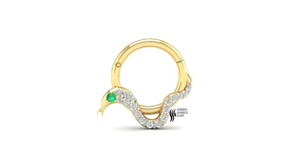 This nose ring combines the soft luster of natural pearl, the delicate charm of pink sapphire, and the brilliance of diamonds, creating a harmonious balance of color and sparkle. The push lock mechanism ensures a secure and comfortable fit, making it suitable for daily wear as well as festive occasions.